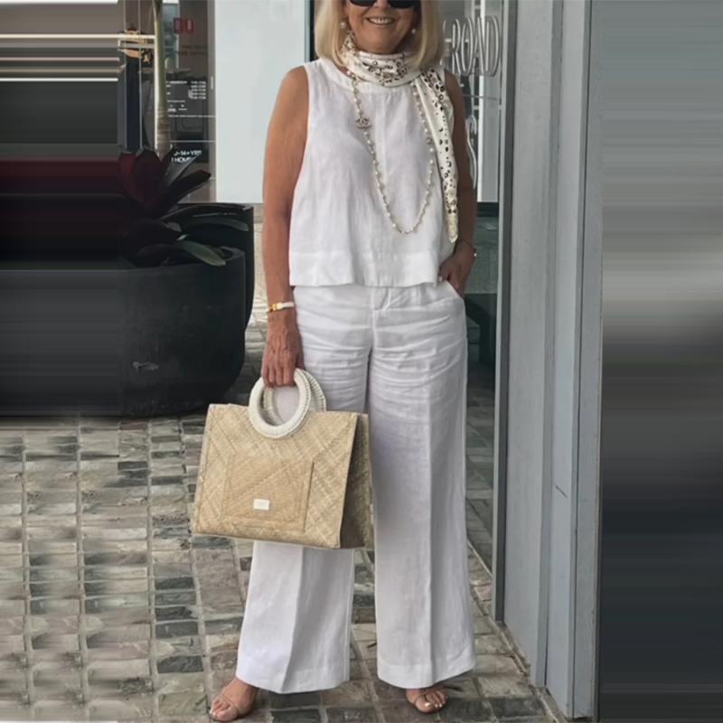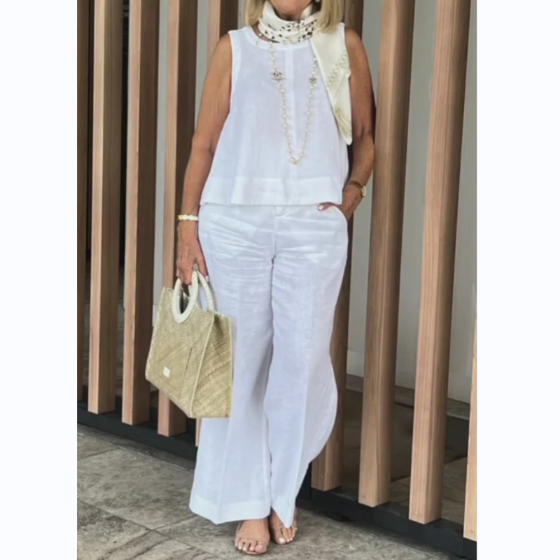 1 Suit * Women's Simple Breathable Suit - Round-Neck Sleeveless Top & Wide-Leg Pants